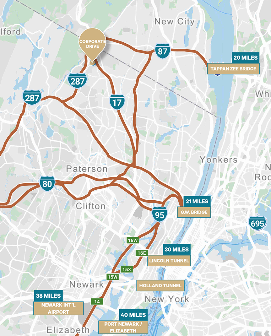 Link Corporate Drive sits at the center of a premier transportation network, offering direct access to major highways, New York City, and regional airports. With nearby retail, dining, and everyday services, the location combines unmatched logistical advantages with everyday convenience.